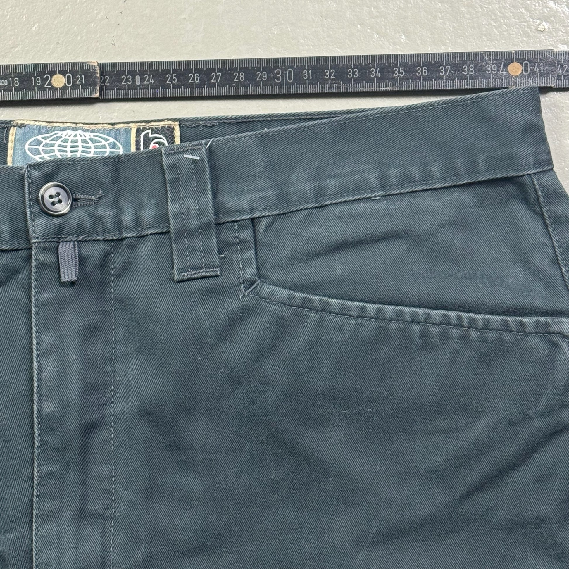 Details: - Rare✨, late 1990‘s–early 2000s workwear-inspired denim. Dark indigo/ink wash with a subtle worn-in fade and sturdy, high-quality construction. Straight-to-slightly-flared leg with classic 5-pocket layout and large back patch pockets with flap detail. Clean minimalist look that styles easily with boots or sneakers.